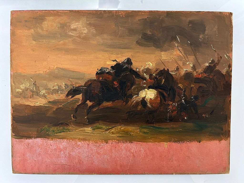 SCENA DI BATTAGLIA Olio su cartone