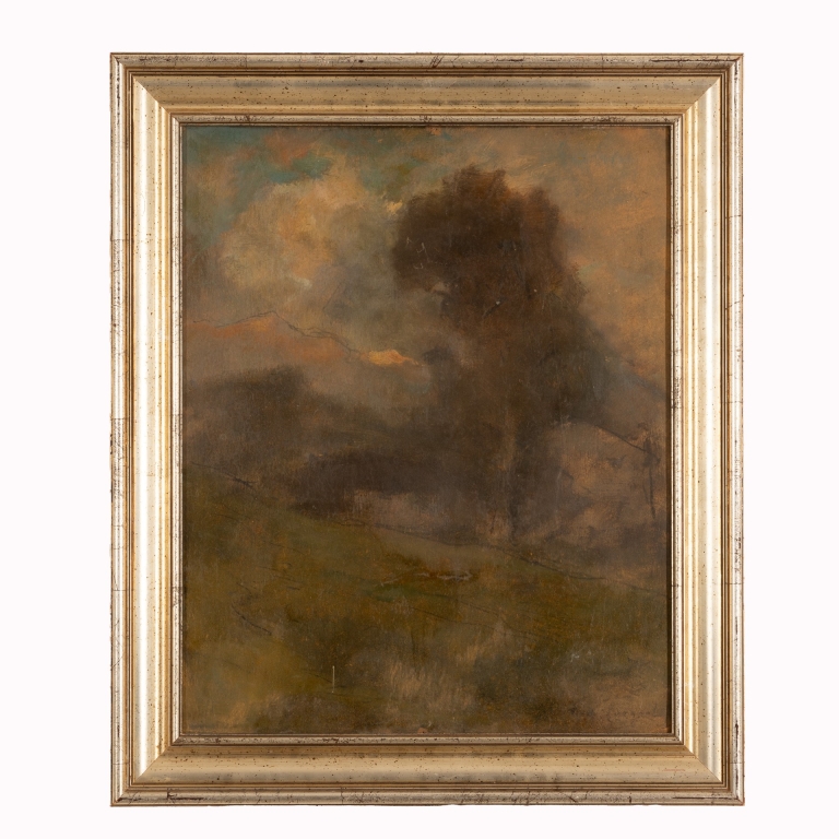 Vittore Antonio Cargnel (Venezia, 1872 - Milano, 1931) Sera a Poffabro olio su cartone cm 49,5x40; con cornice cm 60x50,5