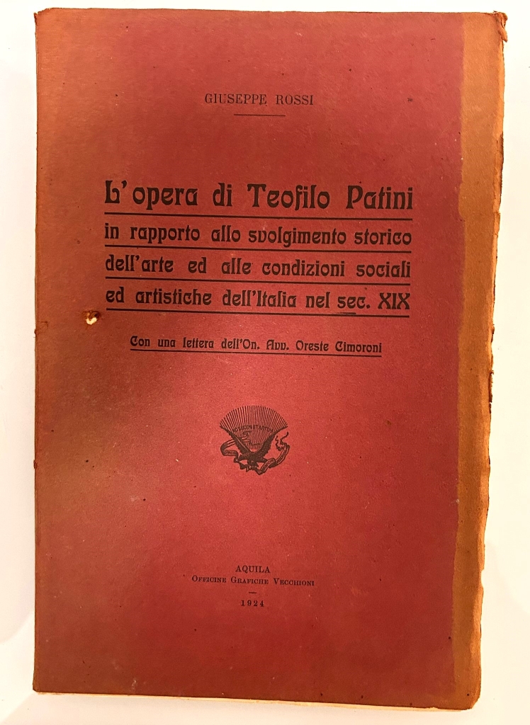 39) Libro di Giuseppe Rossi sull'opera di Teofilo Patini- officine grafiche Vecchioni Aquila 1924. Esemplare intonso ancora da tagliare