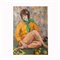 La protagonista di questa tela potrebbe essere stata ritratta dal pittore anche in un altro dipinto del 1941 (se ne vede una riproduzione in: SPATOLA 1985, p. 49), ove ricorrono gli stessi lineamenti e lo stesso taglio di capelli, dove è ancora una volta rilevante il colore giallo (questa volta presente in un mazzo di fiori, forse dei narcisi) e le gambe sono sempre in primo piano; qui torna anche il motivo del periodico stretto nella mano sinistra, e lo sfondo presenta evidenti analogie.