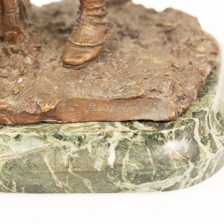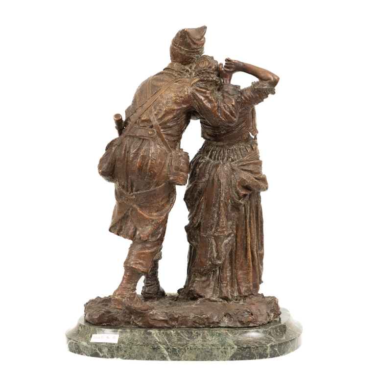 Costantino Barbella ( Chieti, 31 gennaio 1853 - Roma, 5 dicembre 1925) Scultura in bronzo "Il ritorno del soldato" 1892 scultura in bronzo con base in marmo verde cm 35,5 x 21,5 x 19,5