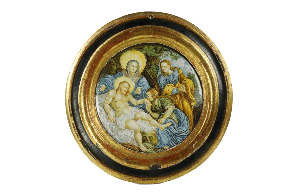 Francesco Saverio Grue (Castelli, 1731 - Napoli, 1800), "Deposizione", ultima decade del XIX secolo, diametro cm 28; con cornice coeva cm 40