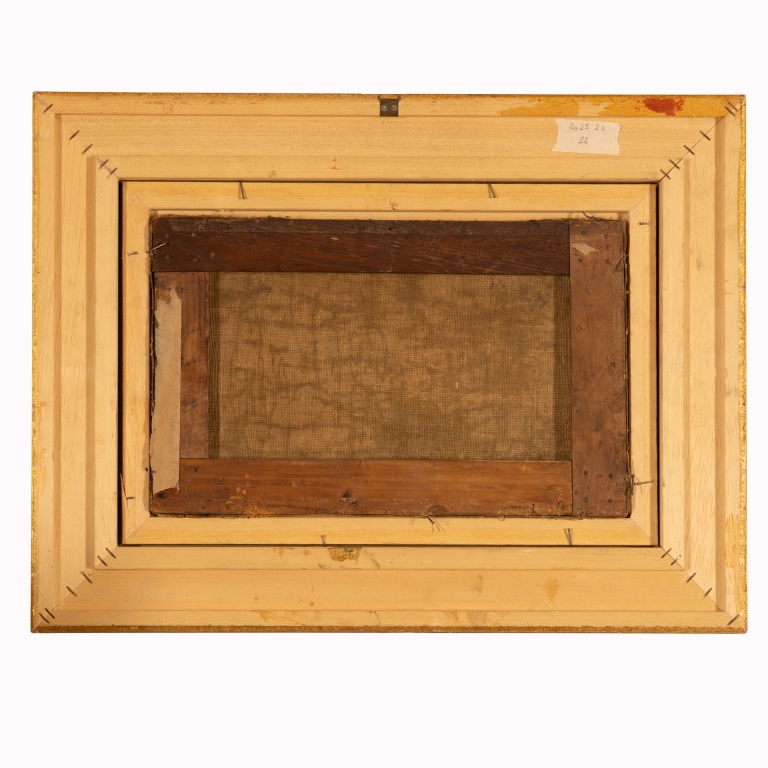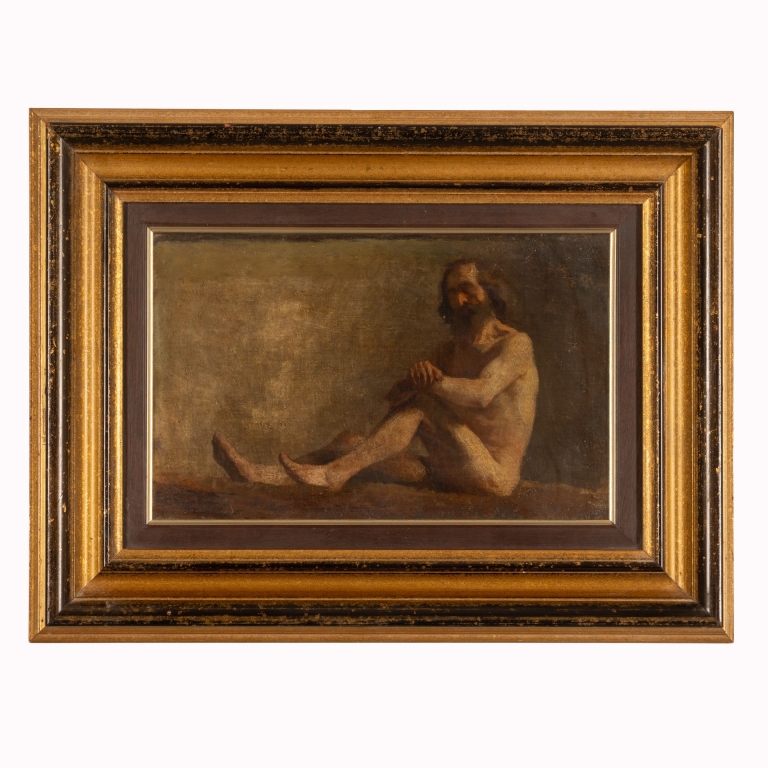 Precedente Lotto 546 Successivo Gliubich Casa d’Aste - Corso Vittorio Emanuele II 9, 67100 L'Aquila ASTA 33 - LOST AND FOUND ASTA 33 - DIPINTI E SCULTURE DELL'800 venerdì 27 giugno 2025 ore 15:00 (UTC +01:00) Nudo di uomo fine '800 olio su tela cm 23,5x36; con cornice cm 41x54,5 pittore abruzzese