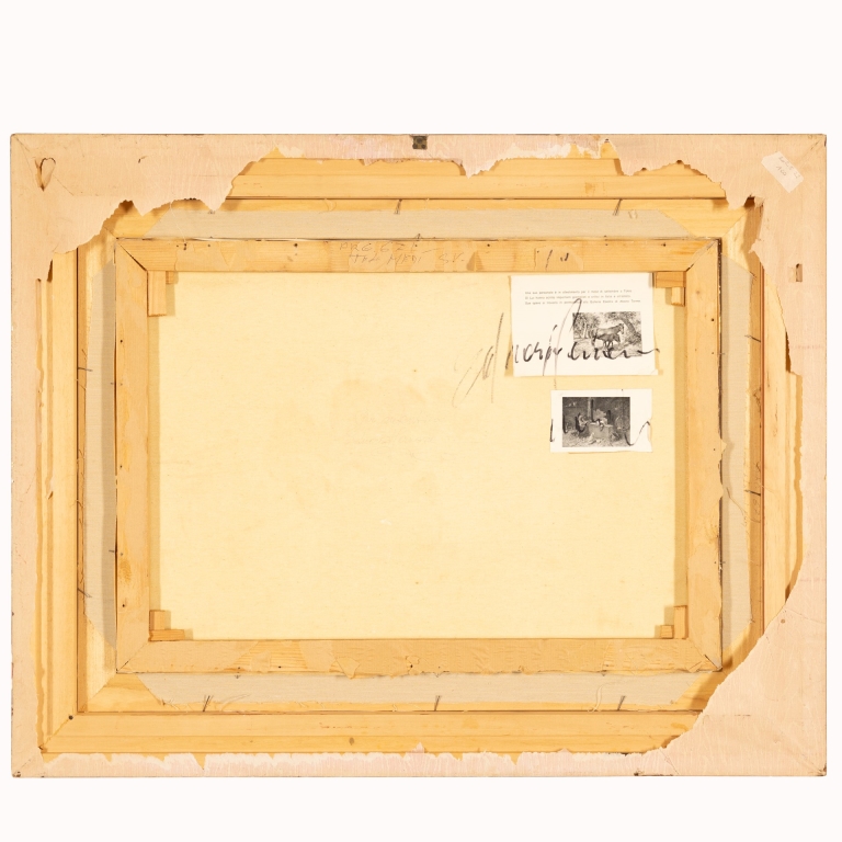 Insistono al retro tela due immagini firmate dall'autore che richiamano una sua personale in allestimento a Tokio