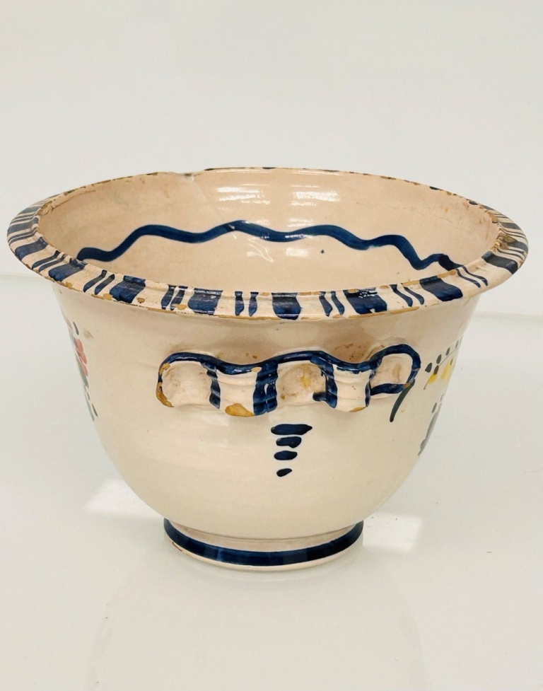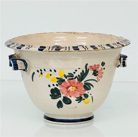 Precedente Lotto 555 Successivo Gliubich Casa d’Aste - Corso Vittorio Emanuele II 9, 67100 L'Aquila ASTA 33 - LOST AND FOUND ASTA 33 - DIPINTI E SCULTURE DELL'800 venerdì 27 giugno 2025 ore 15:00 (UTC +01:00) Grande ciotola in maiolica ad ornato floreale con prese e orlo decorate a nastro. Manifattura di Castelli, XX secolo diametro cm 28