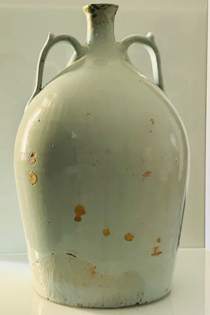 Manifattura del Sud Italia della fine del XIX secolo Grande anfora biansata in smalto berettino cm 44x25; diametro della base cm 22; diametro del collo cm 5