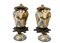 I due vasi raffigurano sul recto, entro cornicette geometriche, scene mitologiche amorose con donna, putto e figura maschile in secondo piano inseriti in un ambiente boschivo, sul retro e sui coperchi puttini librati in volo. I due oggetti hanno le basi e gli orli in bronzo perché adattati a lumi. Pregevole produzione di Gaetano Battaglia del suo ultimo periodo.