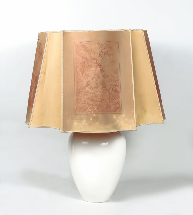 GRANDE VASO A BALAUSTRO IN CERAMICA montato a lume e corredato di paralume h...
