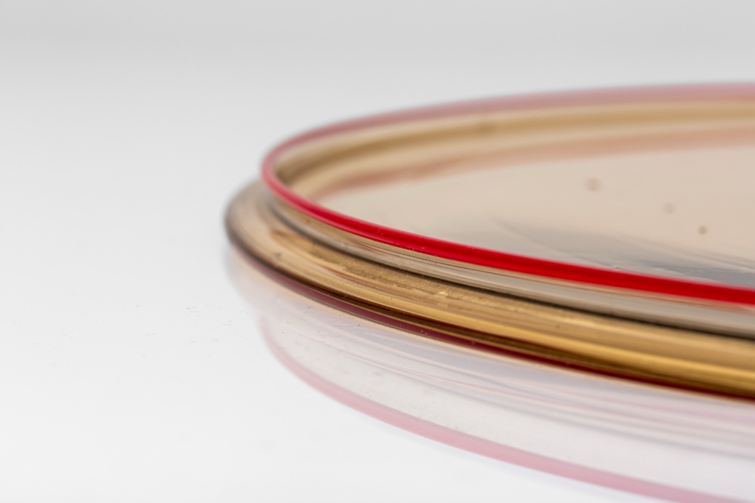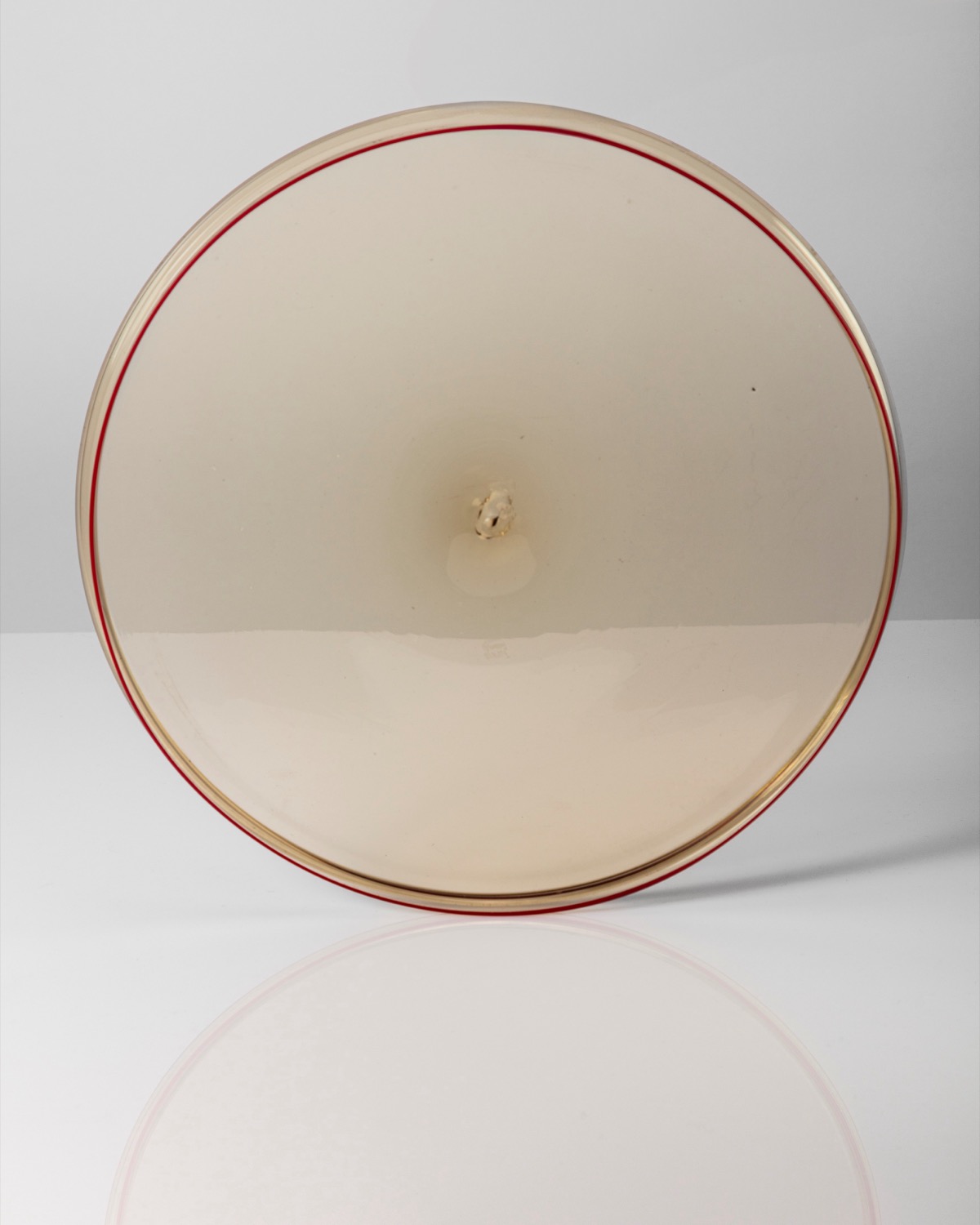 Vassoio cabaret in vetro con filo rosso a decoro applicato sul bordo