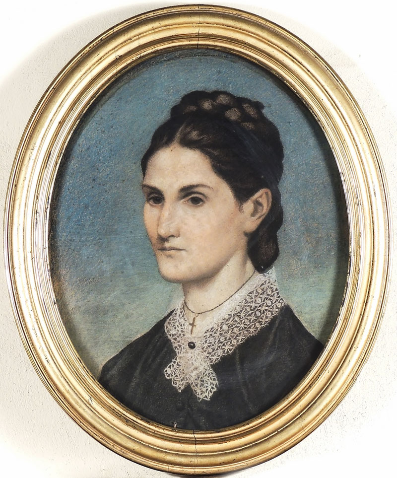 GIOVANNI DUPRÈ (1817-1882) Ritratto della figlia Giuseppina pastello su carta in ovale, in cornice cm 48x38 PORTRAIT OF THE DAUGHTER GIUSEPPINA, PASTEL ON OVAL PAPER