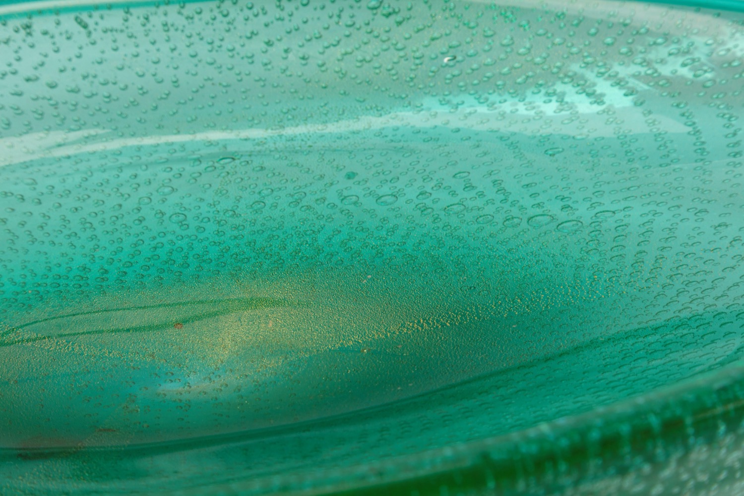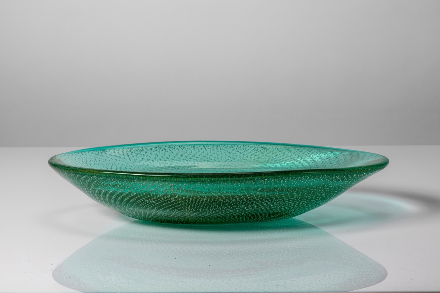 Coppa ovale in vetro bullicante con decoro a foglia d'oro