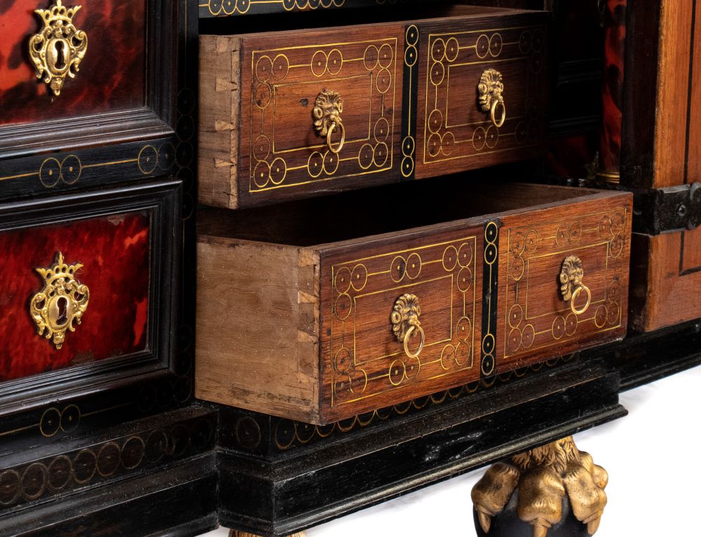 Monetiere in legno ebanizzato e tartaruga Lombardo-Veneto, XVIII secolo Altezza x larghezza x profondità: 86 x 111 x 36 cm.