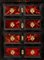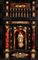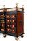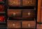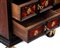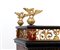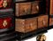 Il vano centrale cela ulteriore cinque cassetti con fronte in palissandro (Dalbergia spp.), maniglie a testa leonina e decorazione perimetrale una decorazione geometrica che incornicia i bordi.