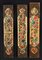 probabilmente parte di un apparato ornamentale murale, supporto ligneo dipinto il policromia su fondo scuro con motivi floreal, foglie, uccelli e racemi.