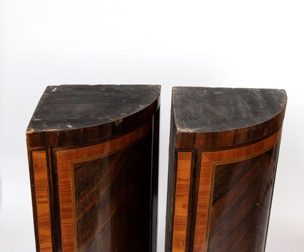 Coppia di angoliere francesi, Luigi XVI Parigi, XVIII secolo Altezza x larghezza x profondità: 96 x 56 x 40 cm. Angolo: 39.
