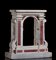 in marmo bianco di Carrara, il fronte, a motivo architettonico con colonne che sorreggono trabeazione, con inserti in marmo rosso; privo dello sportello.