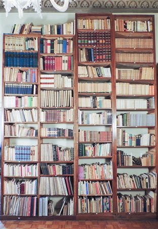 LIBRERIA A GIORNO IMPIALLACCIATA IN NOCE scaffali in legno tenero con profilo in noce, difetti h cm 340x137x30 WALNUT VENEERED AND SOFTWOOD BOOKCASE