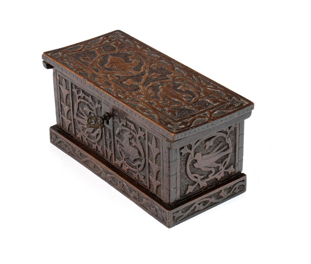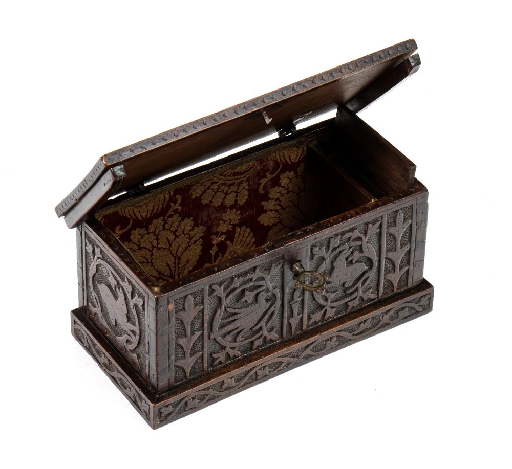 area bergamasca, finemente intagliata a motivi animali, corredata da chiave originale.