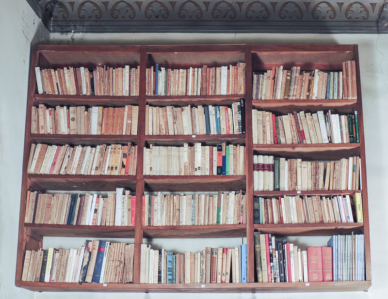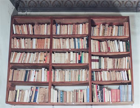LIBRERIA PENSILE A GIORNO IMPIALLACCIATA IN NOCE scaffali in legno tenero con profilo in noce, alcuni difetti h cm 163x225x30 WALNUT VENEERED AND SOFTWOOD HANGING BOOKCASE