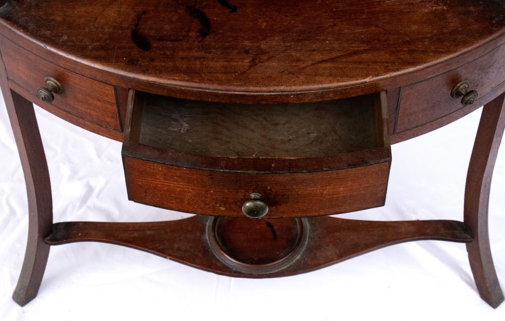 in legno di mogano, con bordature dei cassetti in legno ebanizzato.