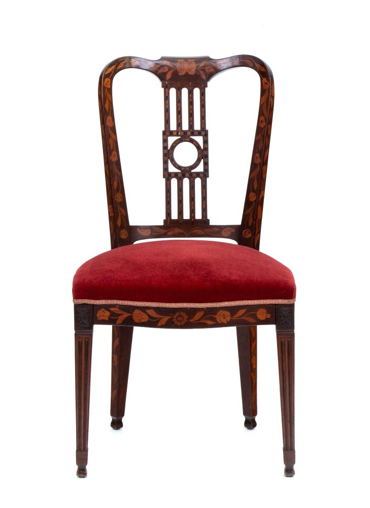 Sedia olandese intarsiata, Luigi XVI XVIII secolo Altezza x larghezza x profondità: 93 x 52 x 45 cm. Altezza seduta: 50 cm.
