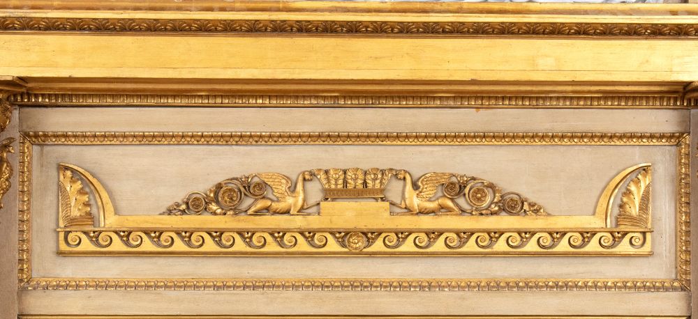 Specchiera italiana Impero laccata e dorata Genova, XIX secolo Altezza x larghezza x profondità: 200 x 140 x 22 cm.