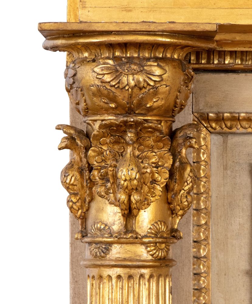 impianto neoclassico caratterizzato da una raffinata cornice laccata, colonne laterali dorate, scanalate e decorate a motivi fogliati con capitelli zoomorfi, e da una fascia superiore con cornice perimetrale a palmette decorata con sfingi affrontate su onde vitruviane.