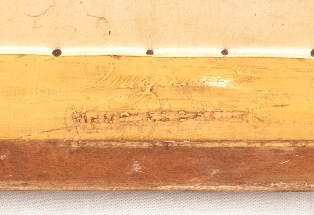 Entrambe le poltrone sono firmate ad incisione sulla parte inferiore della traversa posteriore.