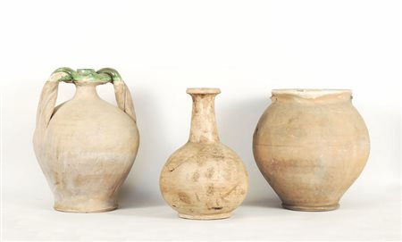 LOTTO DI TERRECOTTE un vaso, un'anfora in parte smaltata ed una base per...