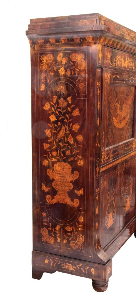 Secretaire Impero olandese intarsiato XIX secolo Altezza x larghezza x profondità: 165 x 111 x 52 cm.
