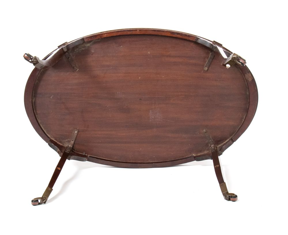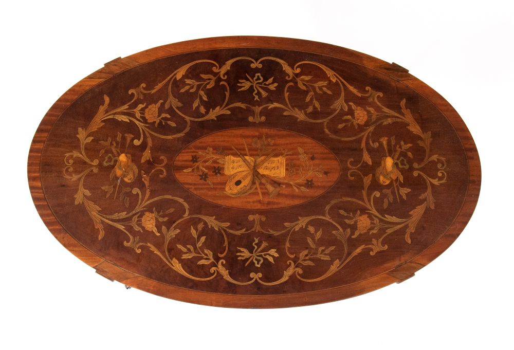di forma ovale, in mogano intarsiato in legni di frutto a motivi floreali.