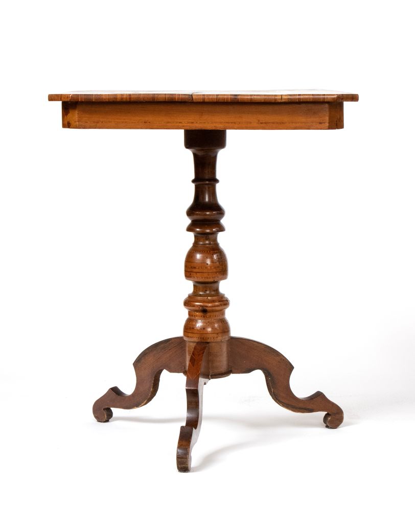Tavolino italiano intarsiato Rolo, XIX secolo Altezza x larghezza x profondità: 75 x 60 x 60 cm.