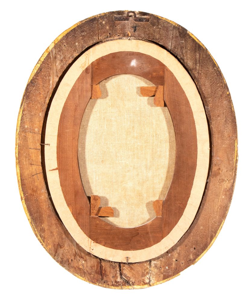 entro cornice dorata finemente intagliata a motivi vegetali.