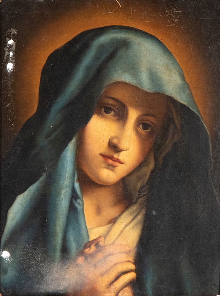 Sassoferrato (seguace di) (Sassoferrato, 1609 - Roma, 1685) Madonna in preghiera Olio su tela 47x37,5. Con cornice