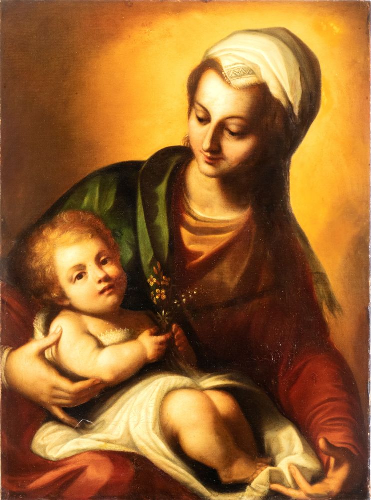 LUDOVICO CARDI, DETTO IL CIGOLI (copia da) Madonna con Bambino Anonimo, scuola italiana del XVIII secolo Olio su tela Altezza x larghezza: 62 x 46 cm.