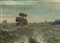 raffigurante imbarcazioni in un mare in tempesta, entro cornice in legno dorato.