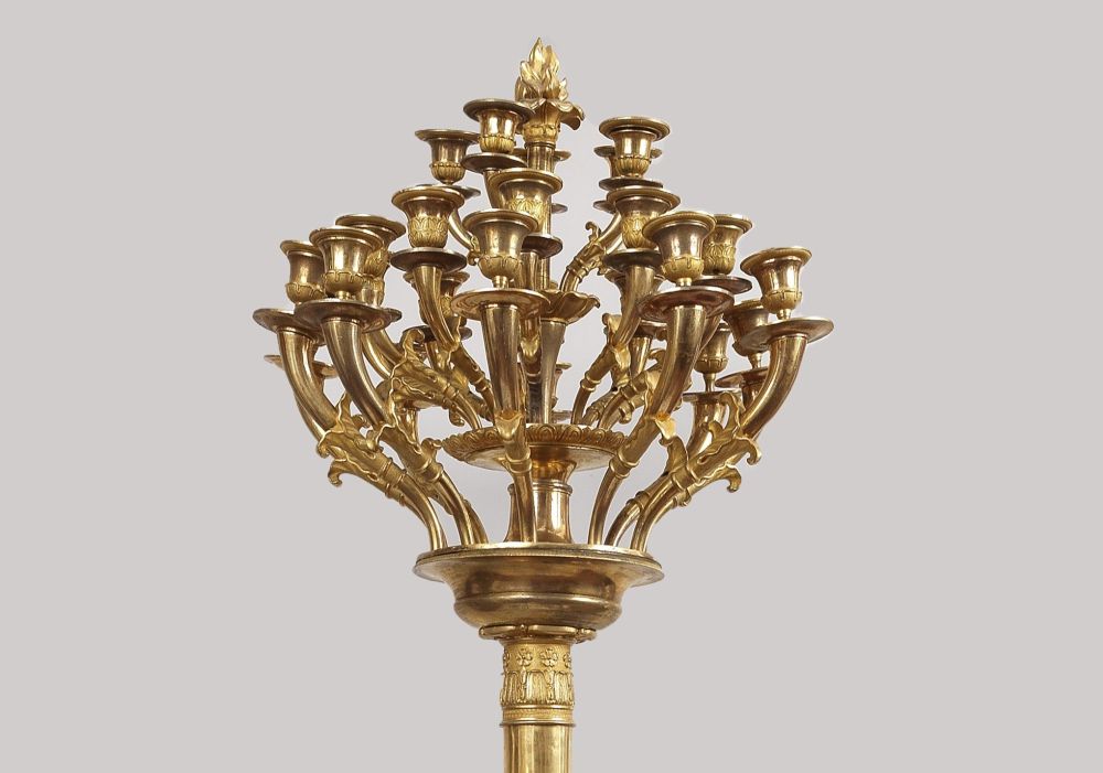 Coppia di grandi torcieri italiani in bronzo Milano XIX secolo