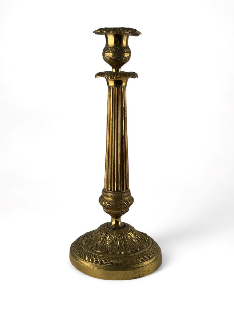 Lotto di quattro candelieri francesi in ottone, Francia Inizio XX secolo Altezza x diametro : 28 x 12 cm.