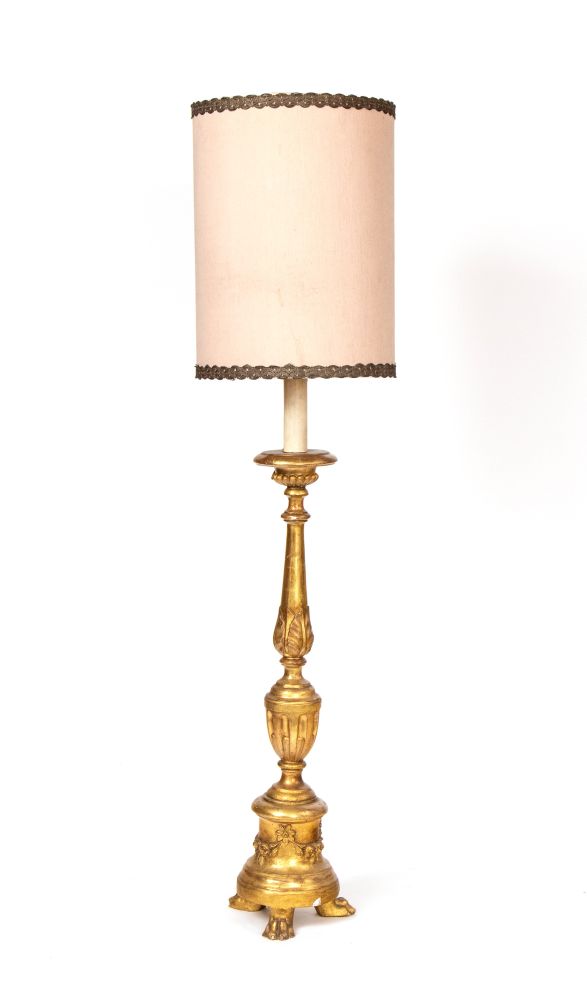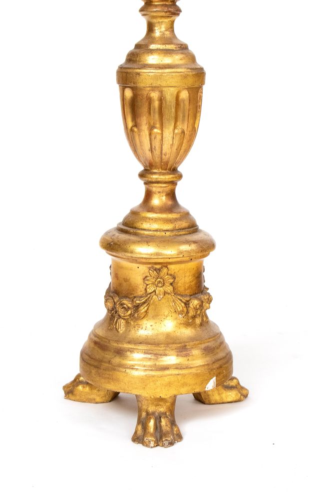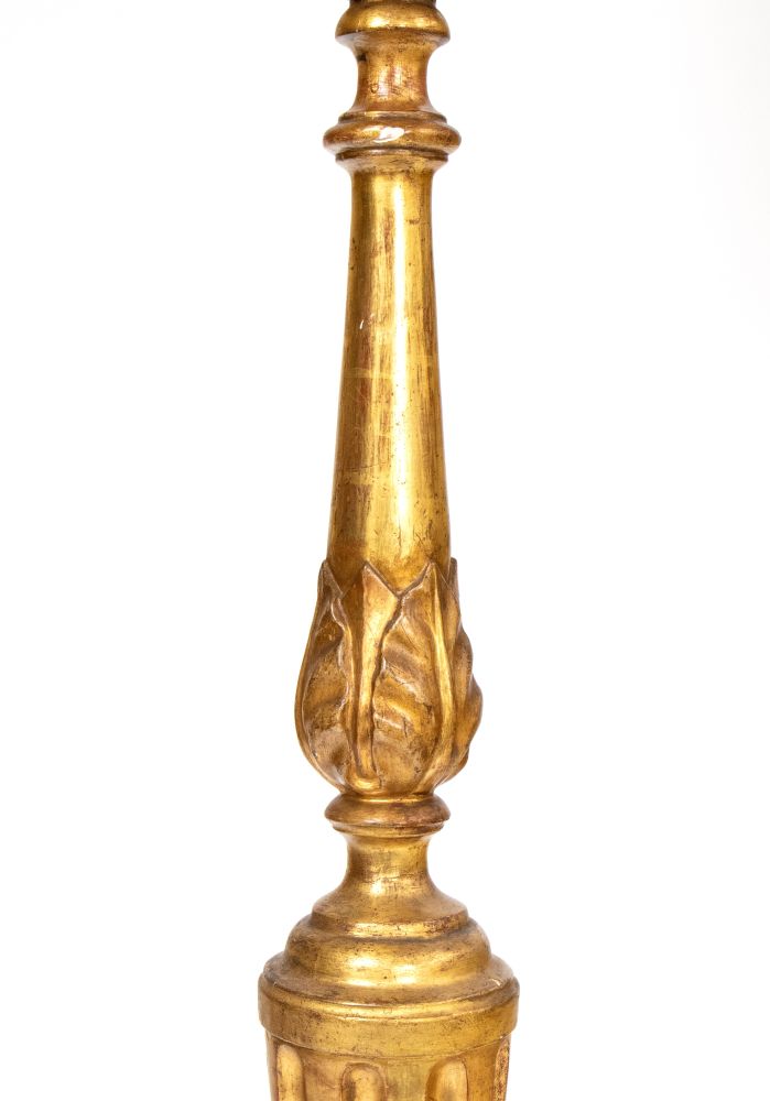 Torciere dorato italiano, Luigi XVI Sicilia, XIX secolo Altezza x diametro: 91 x 27 cm.