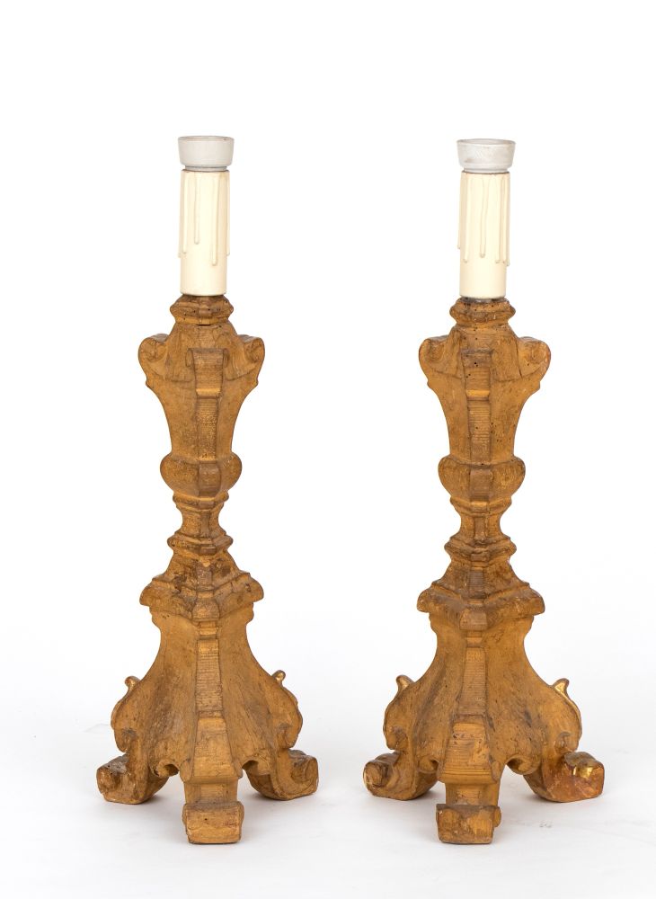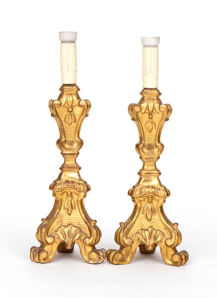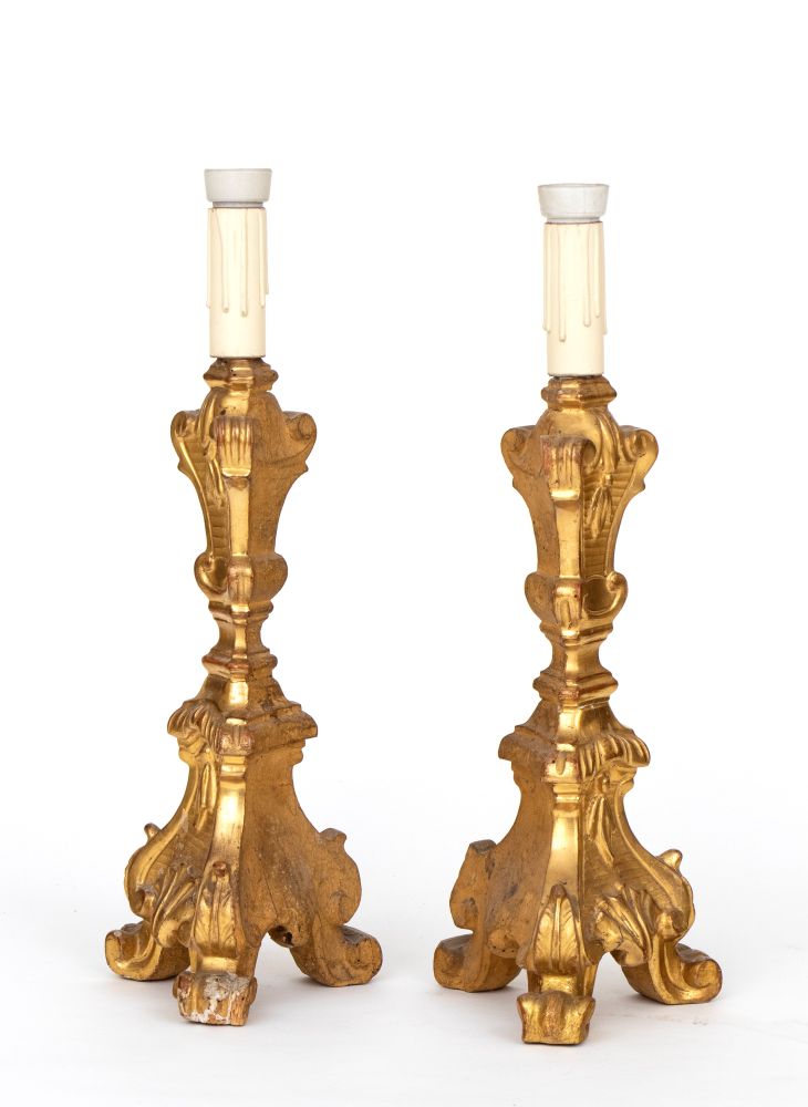Coppia di candelabri dorati italiani XIX secolo Altezza x diametro: 52 x 19 cm