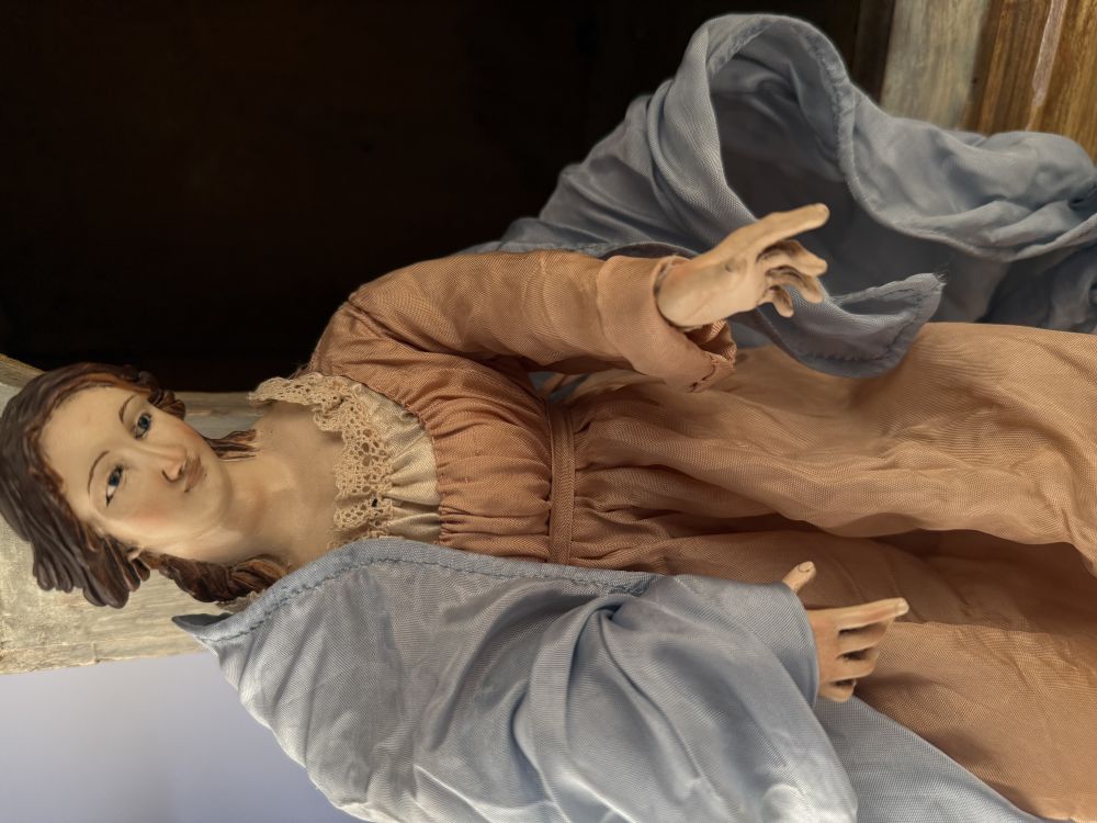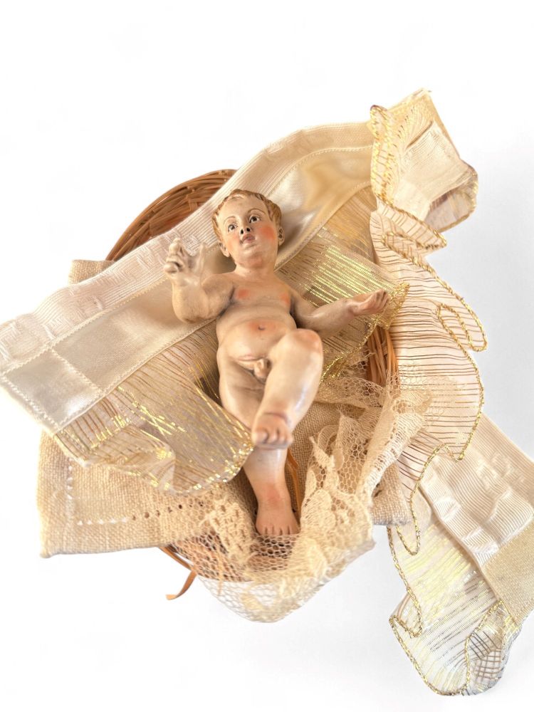 L'opera è inserita in un legno dipinto in oro e verde acqua, chiuso. Al suo interno vi sono le figure della Natività con Giuseppe, Maria e Gesù Bambino. Le teste sono in terracotta policromata, gli arti in legno, corpo in stoppa e vesti in seta.