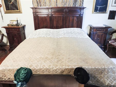 COPRILETTO MATRIMONIALE RICAMATO A FILET metà del XIX secolo con motivi...