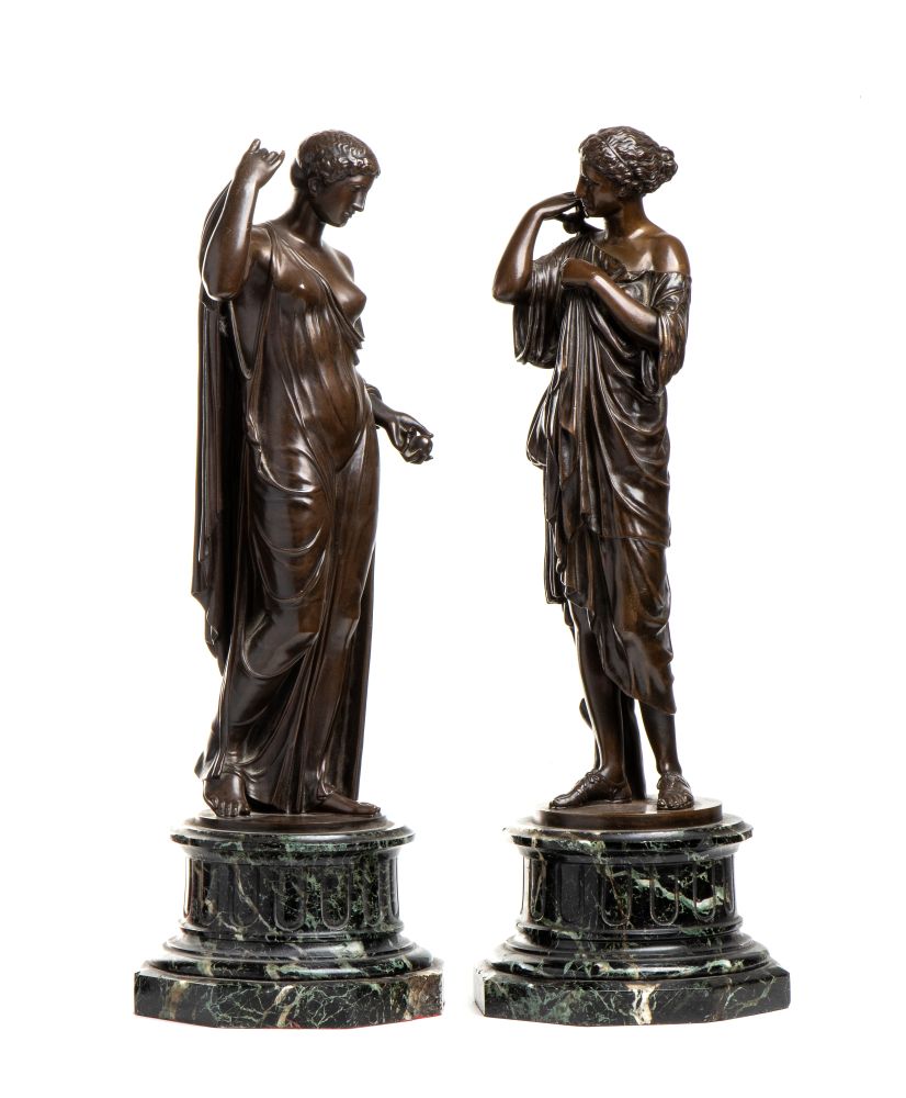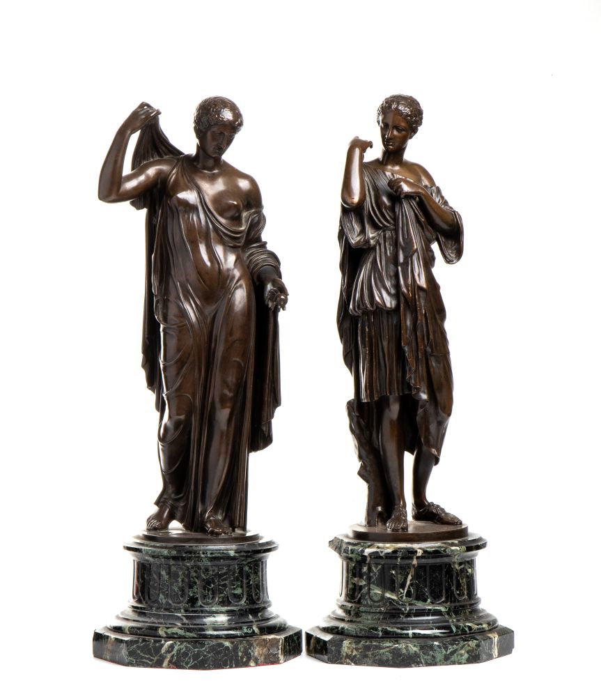 Coppia di sculture francesi in bronzo XIX secolo Altezza x diametro: 52 x 20 cm.