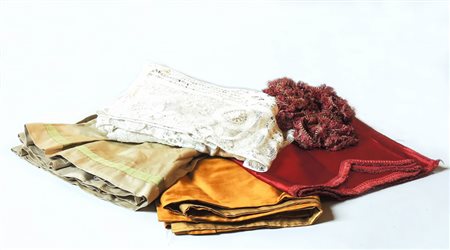GRANDE LOTTO DI TENDAGGI alcune tende in seta e varie mantovane in broccato...
