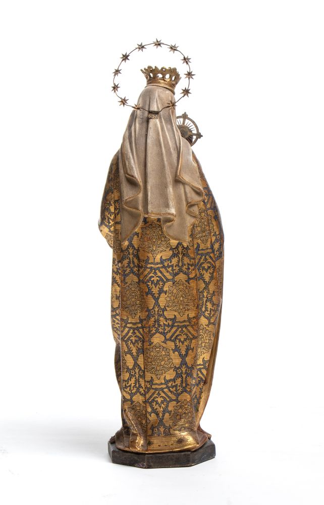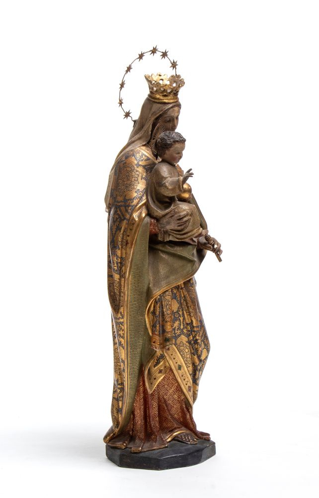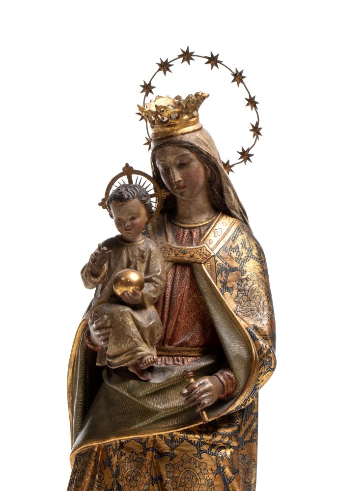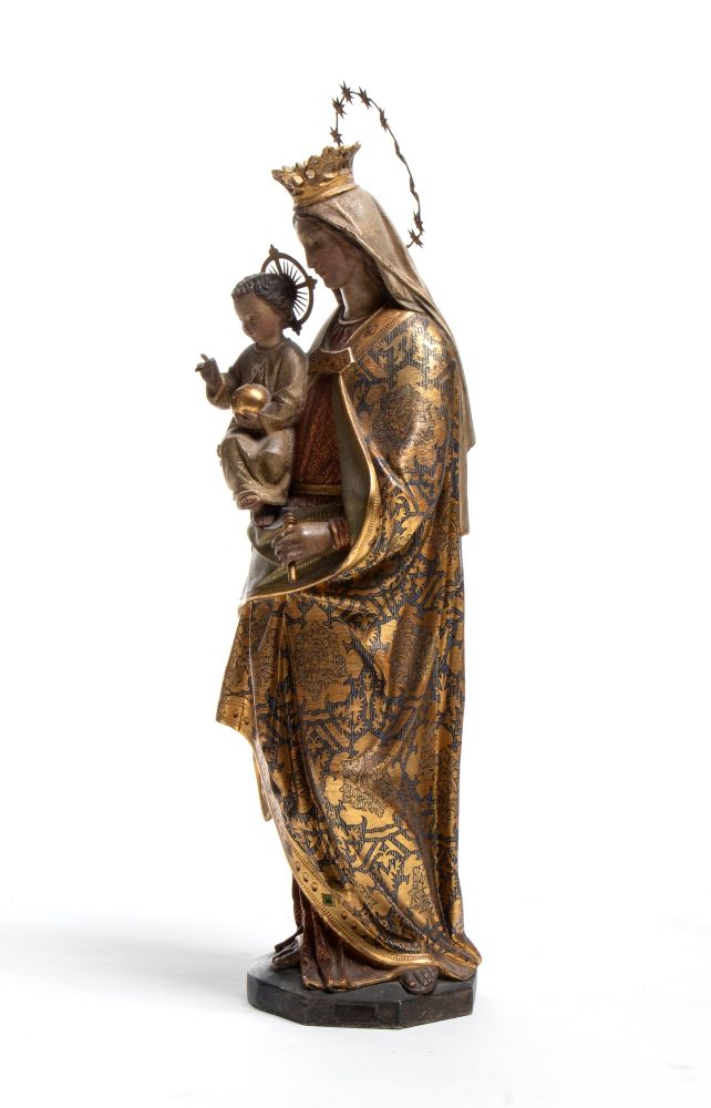 Scultura italiana raffigurante Madonna con Bambino Italia meridionale, XIX secolo Altezza x larghezza x profondità: 54 x 20 x 16 cm