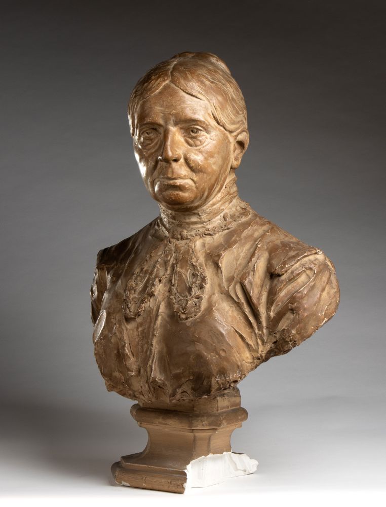 Achille Alberti (1860 - 1943, ) Busto di donna in gesso Italia, XX secolo Altezza x larghezza x profondità: 64 x 45 x 30 cm.