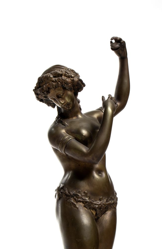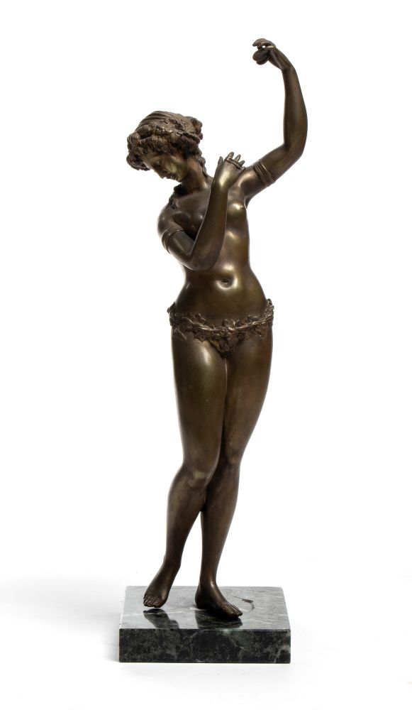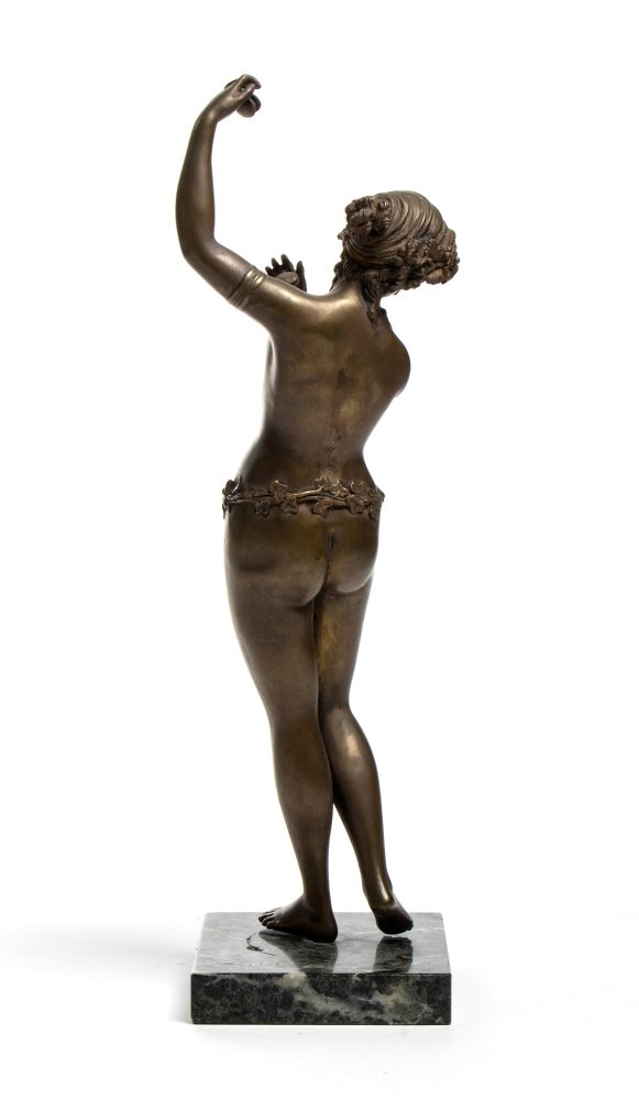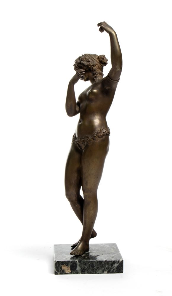 raffigurante donna nuda che danza, fusione di grande qualità, prima metà del novecento. Basamento in marmo