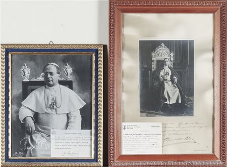 DUE FOTOGRAFIE raffiguranti i Pontefici Benedetto XV e Pio XI, autografe, una...