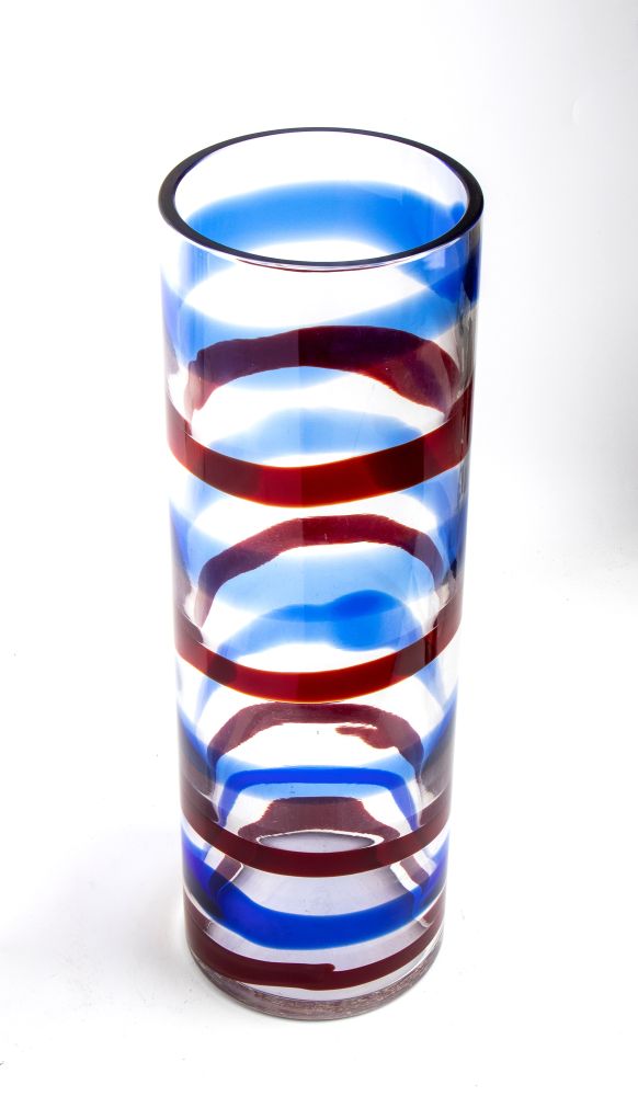 VENINI Collezione Anelli: vaso in vetro soffiato tricolore Altezza x diametro: 55 x 18 cm.