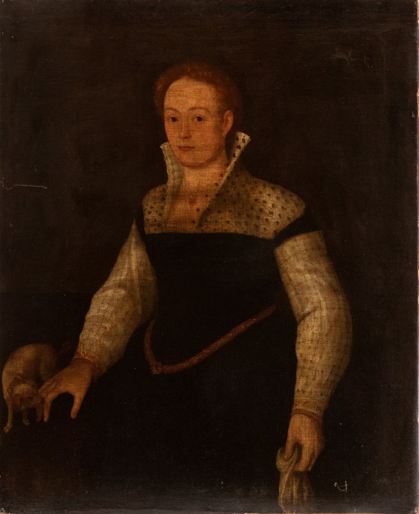 Lotto 25 | Artista veneziano, XVI - XVII secolo Ritratto di gentildonna con cagnolino...